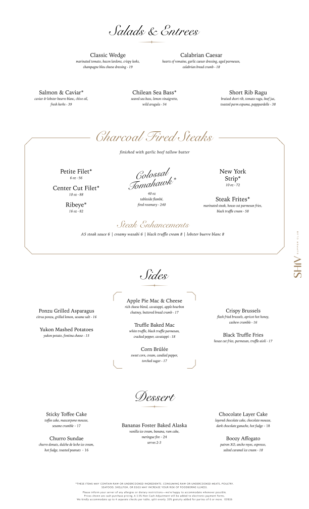 At Shiv Steakhouse, we offer a 15-minute grace period for all reservations. After this time, entry is at the discretion of our host team, and seating may no longer be guaranteed. Tables are seated once the entire party has arrived.